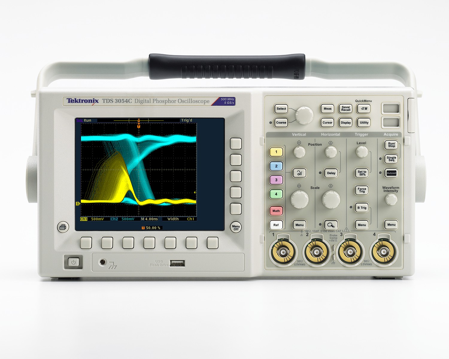 TDS3000C示波器使得包括數字設計人員、制造商、服務和維修技術人員在內的各類用戶以經濟的價格獲得DPO的信號采集和分析功能。DPO技術每秒采集數千個波形,并使用輝度等級來表明信號事件的發生頻率。發生頻次高的事件亮度要高于偶發事件,因此可以輕松區分毛刺、瞬態信號和調制。TDS3000C擁有全分辨率VGA顯示器,所以即使微小的細節也能清楚顯示。一旦用戶看到異常信號,他們可以使用高級毛刺觸發、欠幅脈沖觸發、脈沖觸發或轉換速率觸發功能,簡便地進一步查看信號。選配的軟件模塊提供了可擴充的解決方案,支持極限測試、高級通道數學運算、電信模板測試和HDTV視頻等應用。此外,TDS3000C包括e*Scope內置網頁服務器、WaveAlert異常波形自動檢測軟件和一個前面板USB端口,可以把數據和儀器設置保存到記憶棒。