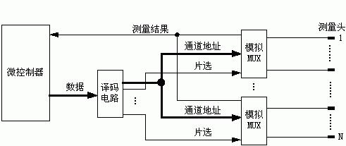 由圖2可見,若以VA作為測量的電壓量,理論上當VA=0時應為通路,VA>0時應為斷路,且VA的值隨兩測量通道之間的電阻值的不同而變化。但由于模擬多路開關本身有不可忽略的導通電阻RON,這樣,在測量通路形成后,若為通路,VA并不等于0,而是等于RON上的電壓降。由于測量的目的只是獲知通/斷路關系,沒有必要去測量VA的具體值,為此只需用電壓比較器比較VA是否大于RON上的電壓降即可。設置電壓比較器的閾值電壓等于RON上的電壓降,電壓比較器的輸出就是測量結果,該結果為可直接由微控制器讀取的數字量。