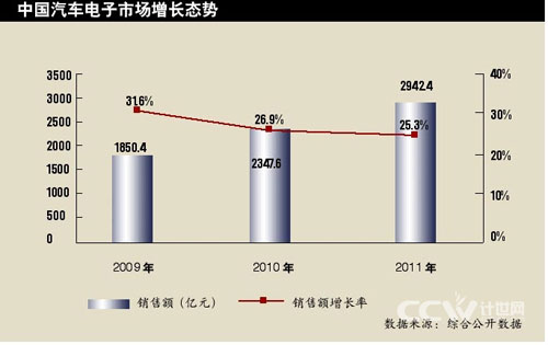 “在前裝市場中,汽車增加一套帶‘DVD+GPS’功能的電子產品要花兩三萬元,而在后裝市場買一套產品只需兩三千元,差了十幾倍!”沐先生感慨道。2009年中國汽車電子產業規模預計達到1484.3億元,2012年則超過3200億元;而后裝市場僅有幾十億元到幾百億元的規模,增長率最多不過40%。