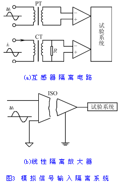 高電壓、大電流信號采用互感器隔離,其抑制噪聲的原理與隔離變壓器類似,這里不再贅述。互感器隔離的應用如圖3(a)所示。