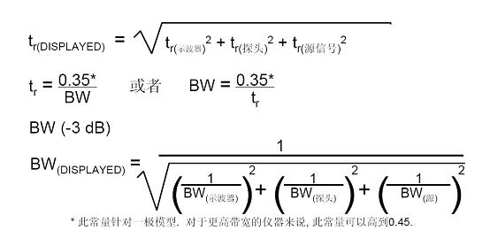 如果示波器和探頭各自均為100MHz帶寬,其上升時(shí)間均為tr=3.5ns 。則有效系統(tǒng)上升時(shí)間就由下式給出: