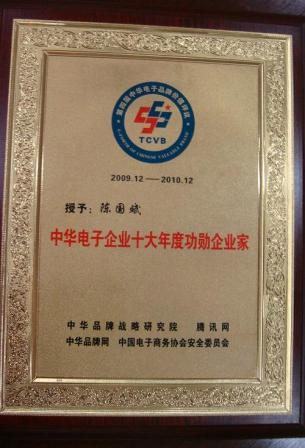 本次評選2009年度中國電子行業(yè)評選出的十大年度功勛企業(yè)家為:郭臺銘(鴻海)、張瑞敏(海爾)、張學斌(創(chuàng)維)、李鋒(北大青鳥)、李志強(紫光)、陳賢興(利爾達)、陳國斌(合科泰)、黃榮添(杰科)、 陳潤生(中國華錄)、蘇華(歐德億泰)。