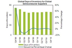 整個2010年的DOI預計穩定在接近70天的水平。半導體供應商打算在這一年中的四個季度都能保存庫存需求的平衡。