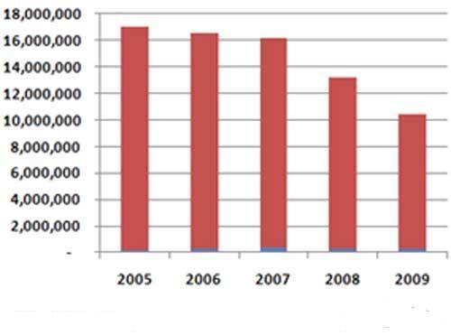 圖1:2005-2009年美國(guó)輕型汽車銷量
