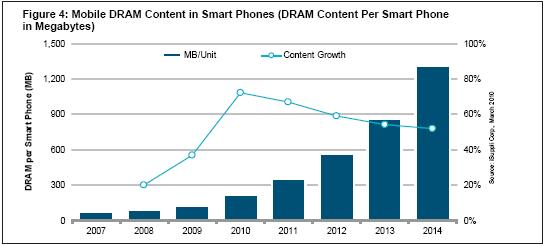 - 未來幾年智能手機使用的DRAM平均數量將增長九倍以上