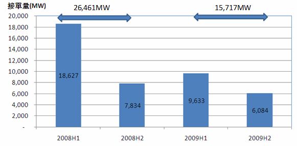 三、2009年風力機接單量驟減41%