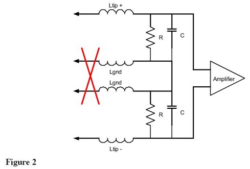 差分探頭包括兩個獨立的輸入端子和一個差分放大器,如Figure 2所示。因為有源電路只放大兩個輸入,公共地連接還有相關(guān)的電感被去除。剩下的電感是兩個尖端電感的和,但是由于Ltip通常遠(yuǎn)小于Lgnd,負(fù)載電感變得很小。尖端電感也是固定的,不依賴于任何因不同用戶而改變的地夾。此外,電容減半,因為負(fù)載電容和原有的輸入電容串聯(lián)。