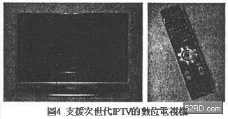 上述整合技術透過終端的共通化,可以實現系統的經濟化要求。圖3是播放與模組共通化的收訊機結構范例;圖4是支援次世代IPTV的數字電視機的實際外觀,它不需要傳統STB就能夠提供IPTV服務。