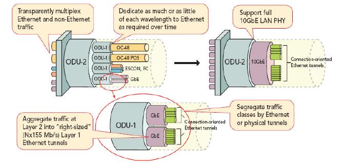 圖3.客戶側匯集的各種協議使得OTN成為高性價比通用基本結構