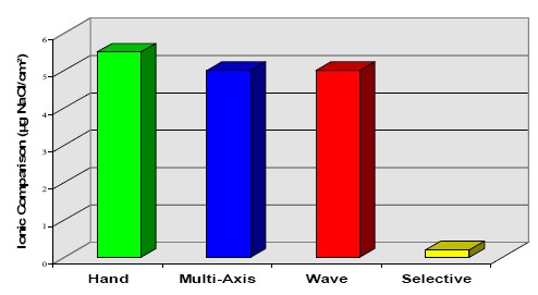選擇焊只是針對所需要焊接的點進行助焊劑的選擇性噴涂,線路板的清潔度因此大大提高,離子污染量大大降低。助焊劑中的NA+ 離子和CL-離子如果殘留在板子上,時間一長會與空氣中的水分子結合形成鹽從而腐蝕線路板和焊點,最終造成焊點開路。因此,傳統的生產方式往往需要對焊接完的線路板進行清潔。而選擇焊則從根本上解決了這一問題。