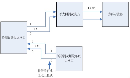 100Base-TX接口的測試采用業(yè)內(nèi)比較通用的誘導(dǎo)發(fā)包的方法來引導(dǎo)DUT發(fā)出擾碼后的IDLE進(jìn)行測試,更多細(xì)節(jié)請參考美國力科公司《Ethernet solution-QualiPHY》專項技術(shù)文檔,
