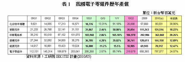 2010年第一季我國電子零組件產業回顧與展望