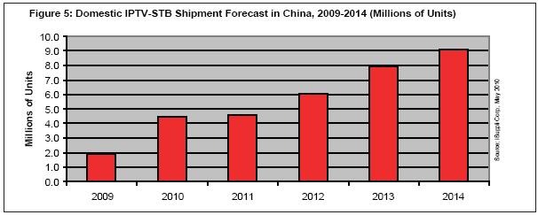 據(jù)iSuppli公司,由于國內(nèi)市場(chǎng)需求旺盛,未來幾年中國網(wǎng)絡(luò)電視機(jī)頂盒(IPTV-STB)有望取得驚人的增長(zhǎng)。