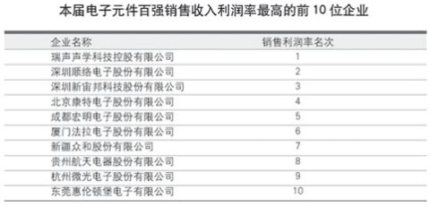 在利潤總額的排名當中,上海飛樂股份有限公司名列第一,亨通集團有限公司、瑞聲聲學科技股份有限公司、永鼎集團有限公司、廣東生益科技股份有限公司分列第二至第五名。
