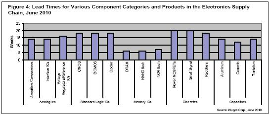 圖4所示為電子供應鏈中各類元件類別與產品類型的交貨期對比。