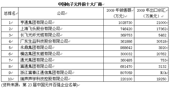 第23屆中國元件百強企業名單于2010年6月22日公布。從本次百強企業的評選結果,以及中國電子元件行業協會(下簡稱中電元協)公布的數據上可以看出,在經歷了全球經濟危機之后,中國電子元件行業正在穩步復蘇,眾多元件企業正在積極尋求在“后危機時代”的生存和發展之道。