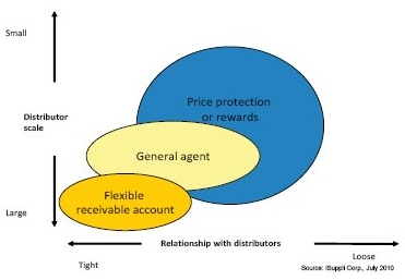 在第二種策略中,擁有廣泛產(chǎn)品線的原廠可以在某一個或幾個產(chǎn)品市場中執(zhí)行總代理的管理體系。雖然總代理不一定創(chuàng)造非常大的總體銷售額,但可能在其各自的產(chǎn)品領(lǐng)域中充當領(lǐng)跑者,并建立健康的渠道庫存。