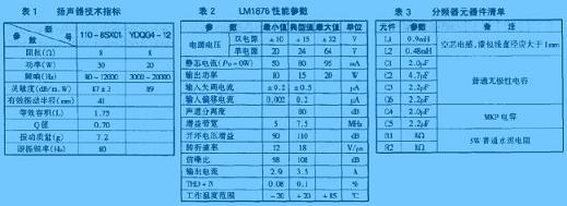 本文介紹的揚聲器均采用防磁揚聲器。高音揚聲器采用上海領先音響儀器公司生產的銀笛牌YDQG4-12型高音揚聲器,該款揚聲器采用了進口絲質振膜、磁液冷卻系統、全封閉防磁式磁路等一系列Hi-Fi單元采用的技術,使它比常見的低價高音單元擁有更大的功率承受能力,音質更細膩柔美。低音揚聲器則采用了南京電聲股份公司生產的南鯨牌4英寸噴膠紙盆防磁低音揚聲器,型號為110-8SX01。各揚聲器技術指標如表1所示。