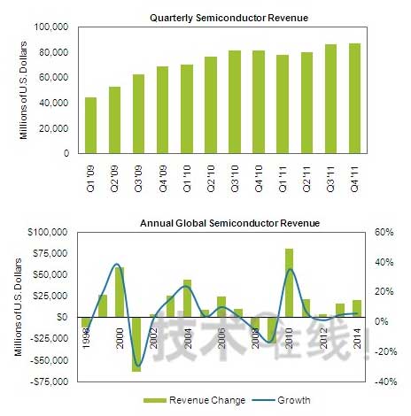 iSuppli從正面否定了對于此次快速增長所擔(dān)心的“泡沫”和“二次探底”。關(guān)于泡沫問題,有觀點認(rèn)為,此前曾創(chuàng)下歷史最高增長率的2000年出現(xiàn)了需求泡沫,所以此次的增長會不會也是泡沫。但是,iSuppli指出,2000年的增長是繼1999年經(jīng)濟(jì)繁榮之后的產(chǎn)物,而此次增長的背景卻是經(jīng)濟(jì)形勢從2009年以前的經(jīng)濟(jì)低迷期開始的復(fù)蘇,因此這兩種情況“在循環(huán)本質(zhì)上完全不同”。關(guān)于二次探底,iSuppli高級副總裁戴利·福特(Dale Ford)表示,“我不同意二次探底將要到來的觀點”。他認(rèn)為,從2010年下半年開始,2010年半導(dǎo)體市場將恢復(fù)到通常模式。也就是說,2010年第二季度將環(huán)比增加8.2%,達(dá)到峰值,第三季度將環(huán)比增加6.7%、第四季度將環(huán)比增加0.4%,出現(xiàn)減速,進(jìn)入2011年后,由于通常的季節(jié)因素,將轉(zhuǎn)為環(huán)比負(fù)增長。iSuppli預(yù)測,回到這種標(biāo)準(zhǔn)增長模式后,2011年的半導(dǎo)體市場將增長7%。