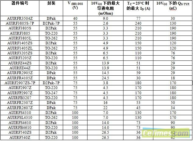 國際整流器公司 (International Rectifier,簡稱IR) 日前宣布拓展了針對低導(dǎo)通電阻(RDS(on))應(yīng)用的汽車用功率 MOSFET 專用系列,包括車載電源及內(nèi)燃機 (ICE) 、微型混合動力和全混合動力平臺上的重載應(yīng)用。