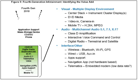 圖9所示為一線供應商將來如何需要在第四代汽車信息娛樂架構中尋找增加價值的機會,以保持競爭優勢。