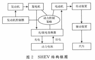 混合動力電動汽車由發動機和蓄電池共同提供動力,發動機和電動機可進行不同組合得到不同的驅動方案,如:串聯、并聯及混聯。整車性能的好壞不僅與發動機和電動機等部件有關,還與其控制策略和優化方法有關。按照能源組合的方式,混合動力電動汽車可按動力驅動方式分為串聯式混合動力電動汽車(SHEV)和并聯式混合動力電動汽車(PHEV)。