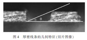 從圖4可以看到,線條高度/線距比例已接近1/2。即,則角度為27°。當使用厚密板作為線路檢查的對象時,所需的光源光線入射角度比普通光源所能提供的光線角度大得多。要想得到清晰且對比度良好的圖像,必須提高光源的角度到某個合適的值,同時綜合考慮基材和線路的光學特性。