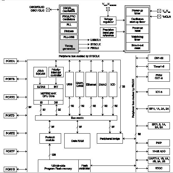 另外,不要忽視那些可能導(dǎo)致嚴(yán)重預(yù)算問(wèn)題的膠合邏輯,如看門(mén)狗定時(shí)器、低電壓檢測(cè)、電壓整流器、主時(shí)鐘/外設(shè)時(shí)鐘/實(shí)時(shí)時(shí)鐘等。這些功能的集成,使PIC32 系列成為真正適用于“控制”應(yīng)用的芯片,有別于“計(jì)算機(jī)”芯片。