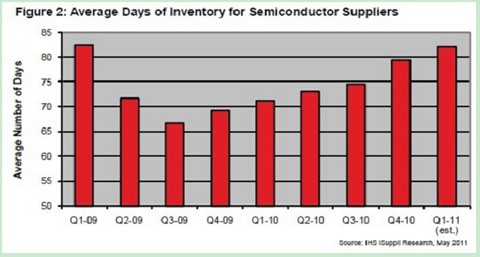 近日消息,據IHS iSuppli公司的研究,第一季度的過多半導體庫存,幫助半導體產業避免了組件嚴重短缺。最初人們擔憂,日本地震與海嘯會帶來嚴重的組件短缺問題。