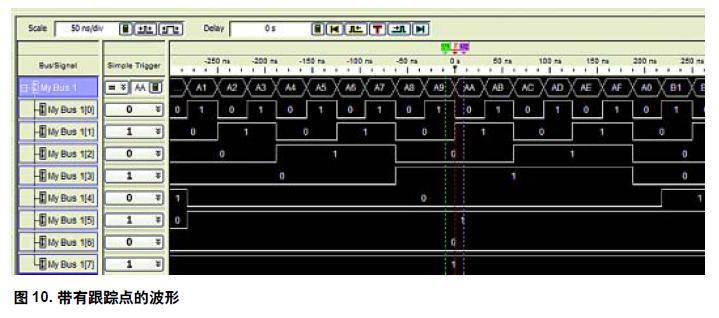 您能告訴分析儀在時鐘邊沿(上升或下降)捕獲數(shù)據(jù),并獲取移位寄存器的所有輸出。當(dāng)然在這種情況下,我們必須延遲跟蹤點,以顧及通過移位寄存器的傳播延遲。
