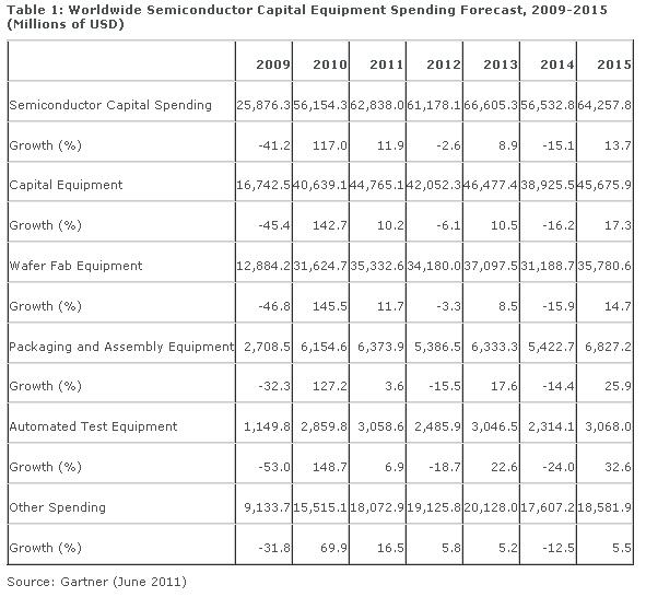 - 2011年全球半導體資本設備支出將增長10.2%