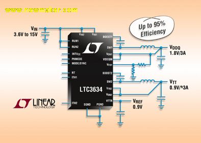 Linear推出同步降壓型穩壓器LTC3634應用于DDR存儲器供電