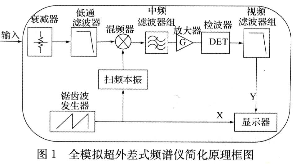 全模擬方式頻譜儀方案很好地詮釋了頻譜儀的基本組成,如圖2所示。