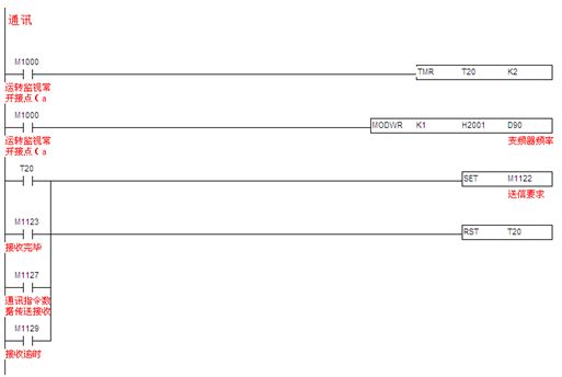 3.2.3通訊程序:臺達SS PLC提供兩個通訊口。本文中,SS PLC的COM1口已與觸摸屏通訊,所以利用SS PLC的COM2 通訊口(此通訊口接口是RS485),支持MODBUS通訊便利指令,編通訊程序像編順序邏輯程序一樣簡單,讓對通訊底層不是很了解的人也能快速上手。快速編寫MODBUS通訊程序,控制如臺達全系列產品,如變頻器、溫控器、伺服等產品。見圖10。