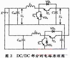圖3所示的DC/DC變換器不但能對直流輸入電壓進行變換處理,而且還可以對直流輸入電流進行調節和控制,在DC/DC階段實現能量調控。
