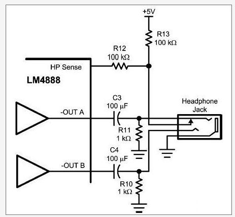 基于每個耳機檢測電路端口設計會採用不同要求,因此,該聲頻子系統提供兩個獨立的耳機(HP)控制輸入接腳。耳機的允許輸入可啟動SE輸出耳機模式和關閉BTL輸出模式。耳機感應檢測輸入需要用一個常規立體聲耳機插孔配合一起使用。剩余的HP邏輯輸入,能允許使用一個標準邏輯電平(Logic Level)來控制。