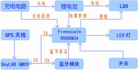 藍牙GPS模塊也是一個小小的便攜設備,需要實現電源的管理、GPS數據的處理、藍牙狀態的判斷以及點亮指示燈等功能。這都要求使用一個MCU來協調控制整機的工作。