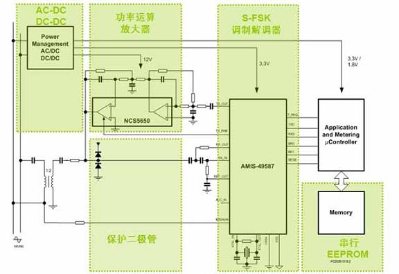 此外,AMIS-49587采用S-FSK調制技術,結合高分辨率的濾波算法,配以自動可信值/中繼器(repeater)功能,提供基于長距離電力線的 高可靠性數據通信。通信誤差比其它可選及現有方案更低。這器件藉板載低抖動鎖相環(PLL)與交流主電源(mains)信號同步。由于包含16位分辨率的 模擬前端,使器件具有極優的噪聲免疫性和極高的接收靈敏度。