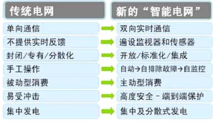 表2:傳統電網與新的智能電網之間的簡單對比。