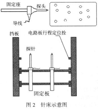針床是電路板測試系統(tǒng)的重要部件,是電路板信號導(dǎo)出的平臺。針床的通用性較差,一般是每種電路板對應(yīng)一個特定的針床,這使系統(tǒng)的通用性受到很大的限制。為使針床具有一定的通用性,本系統(tǒng)中對針床的相關(guān)部件進行了一些改進: