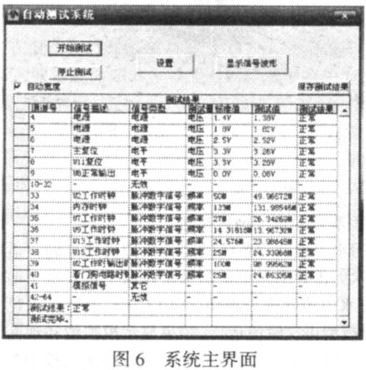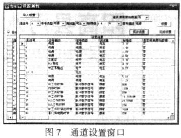 設(shè)置窗口見圖7,本窗口中可以設(shè)置每一路信號的屬性,也可以直接調(diào)出以前保存的設(shè)置,設(shè)置完成后即可按該設(shè)置進行測試。設(shè)置完成后,可以將本次的設(shè)置保存成文件,以便下次直接調(diào)出。