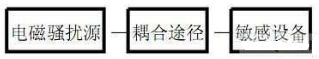 電磁干擾( EM I)是指電磁騷擾引起的設備、傳輸通道或系統性能的下降。形成電磁干擾必須具備三個要素, 即: 電磁騷擾源、耦合途徑和敏感設備。三者關系如圖1所示。