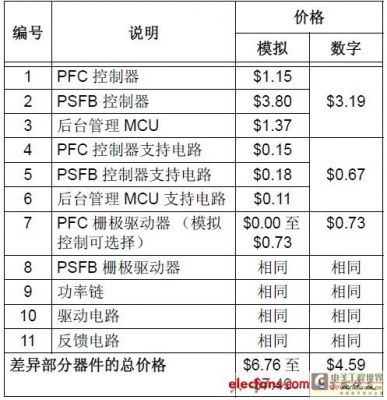 無論在PFC 級中使用或者未使用外部MOSFET 柵極驅動器,表1 中列出了不同模擬電源的所有BOM 成本。