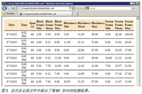 下面的例子是從交換機處將兩個多播流送入到VQS1000服務器。這兩個會話來自兩個不同的視頻編碼器,但看起來仍為同一實際視頻。其中第一個編碼器的編碼速率為2Mbps,而另一個編碼器的編碼速率為8Mbps。圖4表示的是VQS1000應用程序對兩個會話同時測量的兩個拷貝。這兩項測量均是實時進行的,在圖4的并列顯示中給出了它們的測量結果。容易看出,碼率為2Mbps的視頻圖像質量較差,有著較高的塊效應讀數,而碼率為8Mbps的視頻有著相對平緩的塊效應數值,這和我們預期的結果是一致的。