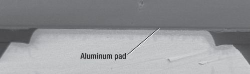 設(shè)計(jì)。WCSP 供應(yīng)商在從焊盤(pán)到區(qū)域陣列范圍 (area array pattern) 的什么地方構(gòu)建布線(xiàn)所需的 RDL 存在爭(zhēng)議。晶圓加工廠(chǎng)方法(請(qǐng)參見(jiàn)圖 1)中,通常將一個(gè)額外增加的鋁層用于這種連接。這種方法的缺點(diǎn)是凸塊支持會(huì)占用很多的頂層金屬面積。