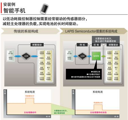 羅姆集團(tuán)旗下的LAPIS Semiconductor面向智能手機(jī)市場開發(fā)出了可用更低耗電量綜合控制各種傳感器的、世界最小級別的低功耗微控制器“ML610Q792”。最近,在手機(jī)中智能手機(jī)所占的比率日益增加,而為了提供新的應(yīng)用和服務(wù)不斷增加的傳感器群,導(dǎo)致智能手機(jī)的電池負(fù)載持續(xù)上升。LAPIS Semiconductor著眼于這種情況,將需要頻繁驅(qū)動的傳感器群從主處理器分離,通過低功耗微控制器進(jìn)行控制,減輕了主處理器的負(fù)載,從而實現(xiàn)了電池的長時間驅(qū)動。另外,利用本微控制器的特點——即耗電量低的特性,通過與無線通信的組合,亦適用于傳感器網(wǎng)絡(luò)模塊等應(yīng)用。