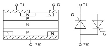 圖1 雙向可控硅結構及等效電路
