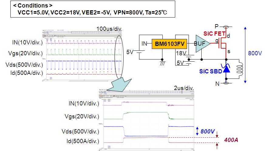業界唯一支持SiC元件電路的產品。羅姆生產的SiC可以在最大800V、400A輸出狀態下確保穩定驅動。