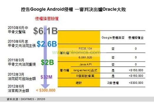 DIGITIMES Research分析師兼項目經理林俊吉分析,行動通訊產業在2012年5月至6月上旬,有幾方面值得留意及了解。其中關注度最高,當屬專利訴訟方面,被喻為世界大賽的甲骨文(Oracle)控告Google侵犯其Java著作及專利權一案,一審判決出爐Oracle大敗,Google幾近全身而退,然林俊吉推估,因甲骨文幾乎篤定上訴,這樁官司尚未完全了結,但和解契機亦在。