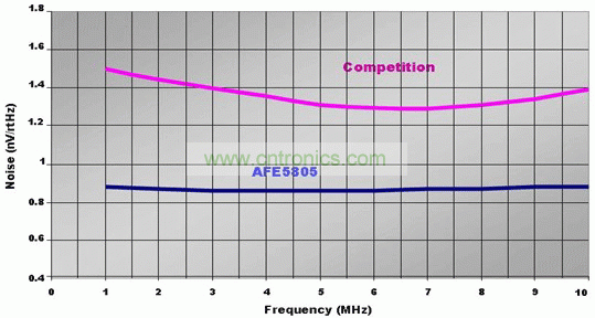 超聲波成像作為一種醫療診斷工具被廣泛采用已有很多年。其之所以被廣泛采用是因為它具有無創傷、低成本、便攜性以及實時性等特點。帶有便攜式超聲波系統的新型前沿產品已經成功地 運用于許多應用中,例如:及時創傷診斷和急診及治療。最近的一些創新將使新型超聲波系統實現前所未有的低功耗和小尺寸。噪聲決定了超聲波圖像的質量和系統的靈敏度。現在就有一款可以 實現更低的噪聲并且在整個工作頻率范圍內噪聲均保持不變的解決方案。